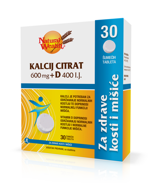 Kalcij citrat 600 mg + D 400 I.J. 30 šumećih tableta